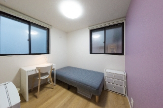 それぞれのお部屋にカラーネーミングが付けられたインテリアデザインで、清潔感ある癒されるプライベート空間です。各部屋内にはデスクとチェアー、クローク、ミニ2ドア冷蔵庫、エアコン完備。また室内干しが出来る簡易ハンガーは便利です。玄関土間空間と一体となったラウンジリビングは、アイランドカウンターキッチンが中央に配置され、ソファーのスペース床は味わいのあるヘリンボーン無垢フローリング。素材感やカラーリング、観葉植物、ライティング等々、若手建築家こだわりのデザイナーズハウスです。建物設備は、大型アイランドキッチン(食洗器付)、バスルーム1ヶ所、シャワールーム1ヶ所、洗面台3ヶ所、トイレ2ヶ所、洗濯機2台(無料)と無料Wi-Fiが利用できます。道路から建物までのアプローチは石畳の床が続き、エントランス空間にはウッドデッキが広がり、玄関ドアはカードキーのオートロックでモニター付インターフォンと防犯カメラのセキュリティで暮らしを守ります。経堂駅周辺は大型商業施設「コルティ」をはじめ、深夜まで営業しているスーパーやファーストフード、コンビニ店などが複数あって、日常生活は大変便利です。